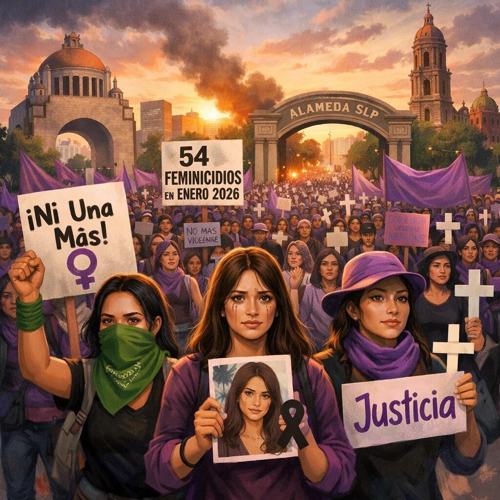Hoy 8 de marzo, en México y en todo el mundo, se conmemora el Día Internacional de la Mujer (8M) en un contexto de persistente violencia de género, con cifras alarmantes de violencia y asesinatos contra las mujeres en el país y protestas masivas que exigen justicia. Según el SESNSP, México registró 54 víctimas de feminicidio tan solo en el mes de enero de 2026. Sinaloa, CDMX, Estado de México y Tamaulipas concentran la mayor parte de los casos, representando el 38.9% de las víctimas. Durante el año 2025 se registraron 721 feminicidios de los cuales 501 fueron niñas y adolescentes. Aunque hubo más de 5 mil mujeres asesinadas, solo una fracción fue investigada como feminicidio. La movilización principal se convocó para hoy en la CDMX partiendo de la Glorieta de las Mujeres que Luchan hacia el Zócalo. Se teme que habrá destrozos y pintas por parte del "Bloque Negro" que tradicionalmente desquicia las manifestaciones pacíficas. En SLP, la movilización iniciará a las 4 pm en la Alameda "Juan Sarabia", frente a la Iglesia de San José. El contingente avanzará por calles como Reforma, Eje Vial "Juan Sarabia", "Manuel José Othón", "Chicosein" y Av. "Carranza", entre otras vialidades del Centro Histórico. Se tiene prevista una intervención de colectivas de madres en la FGE. La marcha concluirá en Plaza de los Fundadores, donde se espera la realización de actividades y pronunciamientos.