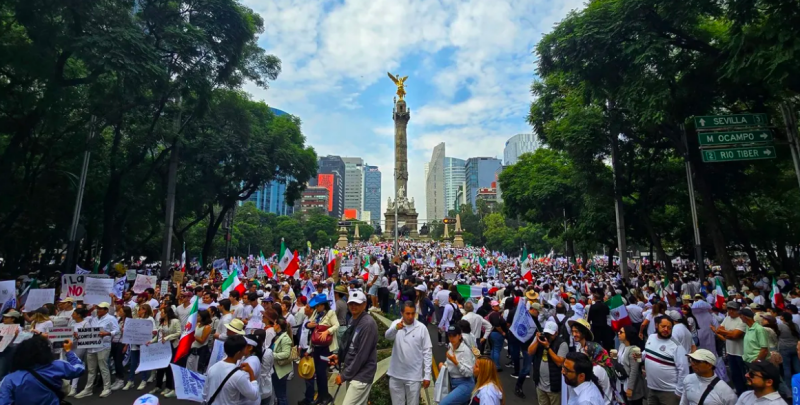 “Democrático es el poder que se ejerce con el beneplácito de todo el pueblo, no solo el de las mayorías aplastantes", expuso uno de los oradores en el Ángel de la Independencia, donde ondearon banderas de México.