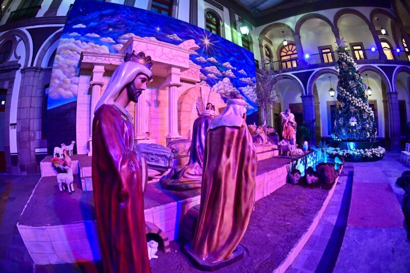 En el emotivo evento, las y los asistentes se deleitaron en un ambiente navideño único, que incluyó disfrutar del tradicional pesebre en Palacio de Gobierno con elementos como los personajes que componen la representación; Jesús, María y José, junto con animales como un buey, un burro y unos corderos, sin faltar la figura del pastorcillo y por supuesto a un costado un árbol de Navidad gigante que las familias potosinas, así como turistas nacionales y extranjeros podrán visitar.