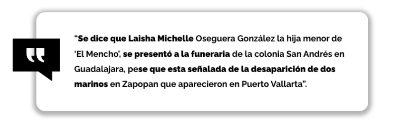 Según el Diario Cambio, "ahora, a Laisha la señalan en redes por la desaparición de dos marinos en Zapopan, quienes después aparecieron en Puerto Vallarta, la descripción de las fotos en las que supuestamente aparece dice lo siguiente: