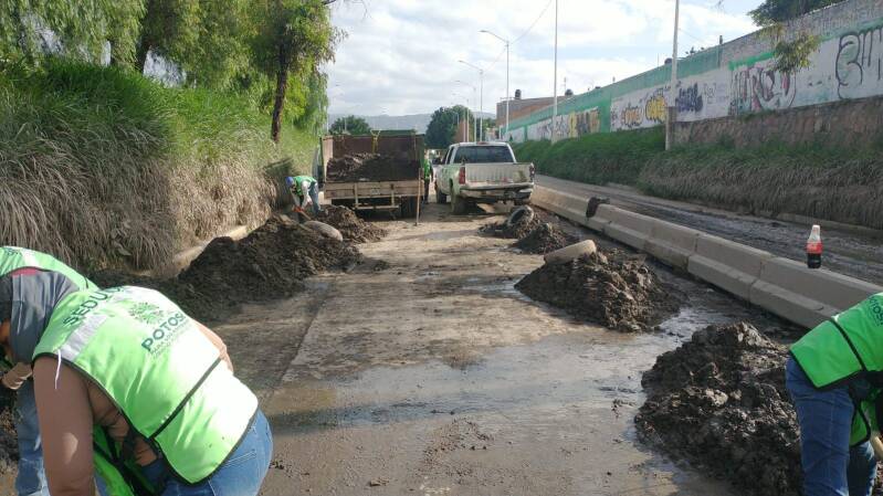 En las acciones instruidas por el gobernador Ricardo Gallardo Cardona para garantizar la movilidad de las y los potosinos, se requirió el uso de maquinaria para agilizar su puesta en marcha para usuarios y usuarias en la capital potosina. En total se lograron quitar más de 10 toneladas de residuos urbanos en solo este punto de la capital.