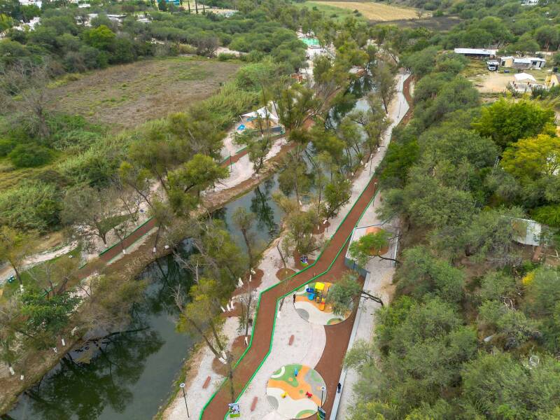 El nuevo parque lineal, con una inversión de 65 millones de pesos, se suma a la red de parques estatales, que ha modernizado el gobernador Ricardo Gallardo en las cuatro regiones, generando nuevas oportunidades de atractivo turístico y brindando apoyo a las y los potosinos con espacios naturales, en este caso junto a la ribera del Río Verde, para que las familias y el turismo nacional e internacional disfruten, al integrarse y convivir con la naturaleza, enriqueciendo la oferta turística y recreativa en la región