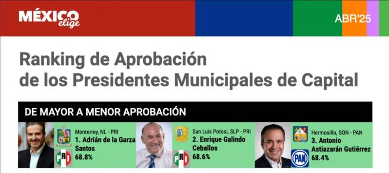 Enrique Galindo Ceballos, presidente municipal de San Luis Potosí, se posicionó en el segundo lugar nacional entre los alcaldes de ciudades capitales con mayor aprobación, de acuerdo con la medición de México Elige correspondiente a abril, con un 68.6 por ciento de opiniones favorables. Esta alta aceptación refleja el respaldo ciudadano a su modelo de gobierno.