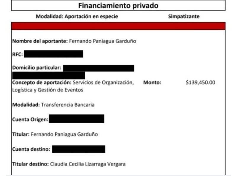 Morena usó los 189 mil pesos donados por Fernando Paniagua para pagar los servicios de la empresa Live Producción de Eventos, representada por Claudia Cecilia Lizárraga Vergara, la cual se encargó de todo lo necesario para las nueve asambleas celebradas en agosto de 2023.