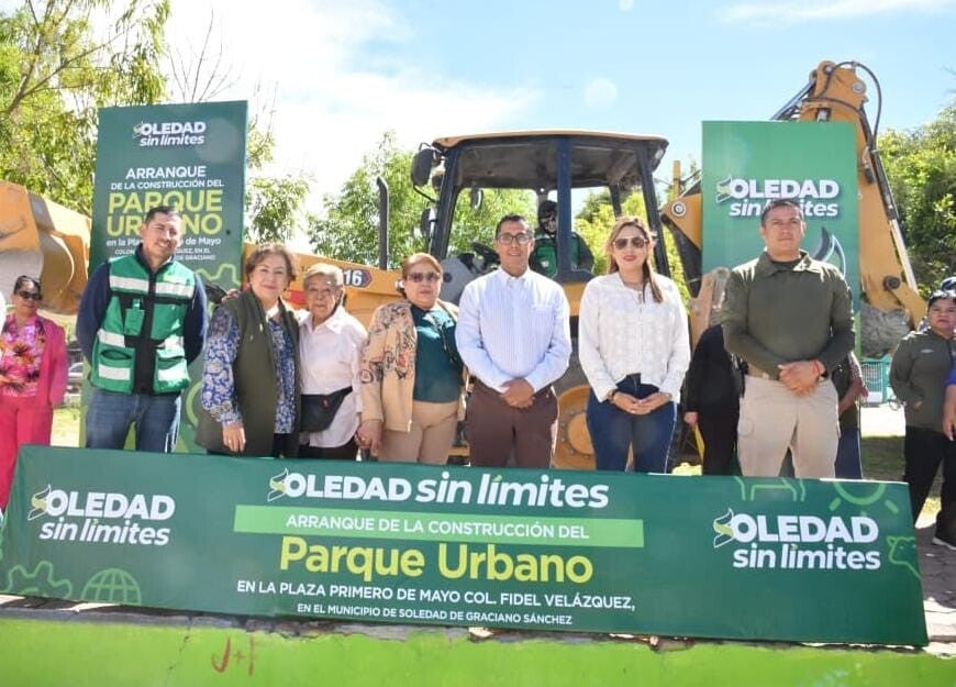 Con un impulso firme por recuperar espacios públicos donde las familias gocen de calidad de vida y sana recreación, el alcalde Juan Manuel Navarro Muñiz instruyó el arranque de la construcción del Parque Urbano "Primero de Mayo" en la colonia "Fidel Velázquez" de Soledad de Graciano Sánchez, obra que representa una inversión de más de 3.2 millones de pesos y que beneficiará a casi 14 mil habitantes de esta zona del municipio, con actividades de sana recreación social.
