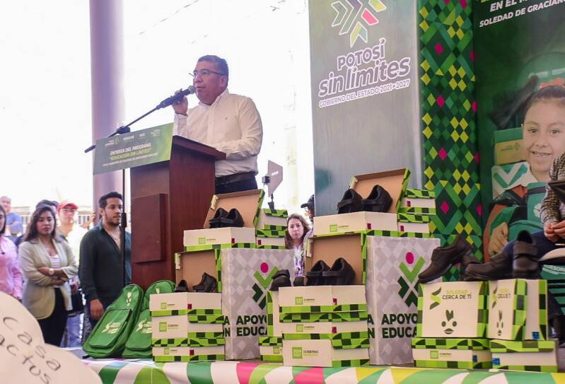 Juan Manuel Navarro Muñiz, alcalde de Soledad de Graciano Sánchez, puso en marcha en la colonia La Sierra el programa municipal “Apoyos Escolares para Regreso a Clases”, que beneficiará a estudiantes de primarias y secundarias de todas las colonias del municipio con 20 mil mochilas con útiles y 13 mil pares de zapatos, gracias a una inversión municipal de casi 17 millones de pesos; la entrega se realizó en el marco del programa estatal “Educación sin Límites”, encabezado por el gobernador Ricardo Gallardo Cardona, quien estuvo presente en el arranque.