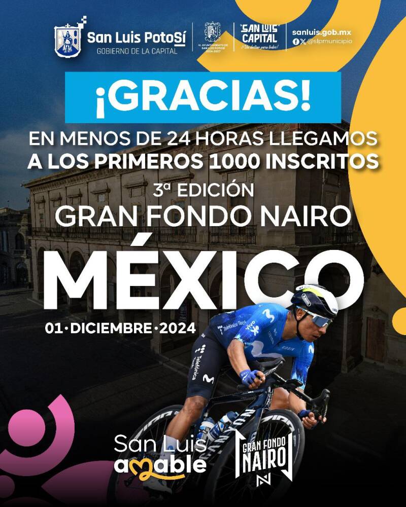 EL GRAN FONDO NAIRO QUINTANA 2024 DE CICLISMO SIGUE GENERANDO GRAN INTERÉS EN SLP Y TODO MÉXICO. SERÁ TODO UN ÉXITO EL 1 DE DICIEMBRE QUE SE CORRERÁ CON MÁS DE 3 MIL PARTICIPANTES
