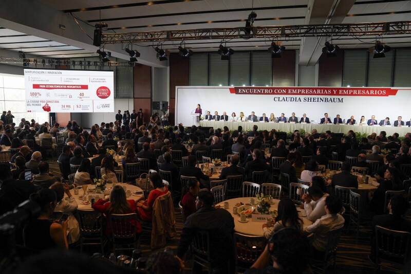 El encuentro de Sheinbaum Pardo fue con más de 500 empresarios nacionales y extranjeros, así como las y los representantes de las cámaras relacionadas al sector, como la Cámara Nacional de Autotransporte de Carga (CANACAR) y la Cámara Mexicana de la Industria de la Construcción (CMIC).
