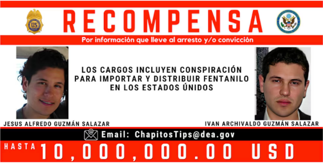 Este conocido capo ya tenía un boletín de recompensa emitido por el Departamento de Estado estadunidense, por la misma cifra, debido a que el 14 de marzo, las autoridades de ese país inculparon a Los Chapitos, Iván Archivaldo y sus hermanos, Jesús Alfredo Guzmán, Ovidio Guzmán y Joaquín Guzmán López, por tráfico de fentanilo, otorgando recompensas de entre cinco y diez millones de dólares, por cada uno.