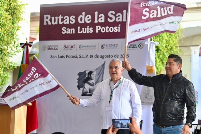El gobernador Ricardo Gallardo Cardona se enlazó hoy a la Conferencia Mañanera del Pueblo de la presidenta Claudia Sheinbaum Pardo para iniciar el programa Rutas de la Salud, el cual garantizará medicamentos e insumos para los 217 centros médicos del IMSS-Bienestar de San Luis Potosí, a través de más de 30 unidades y más de 25 rutas, con lo que se garantiza una salud sin límites para las familias potosinas.
