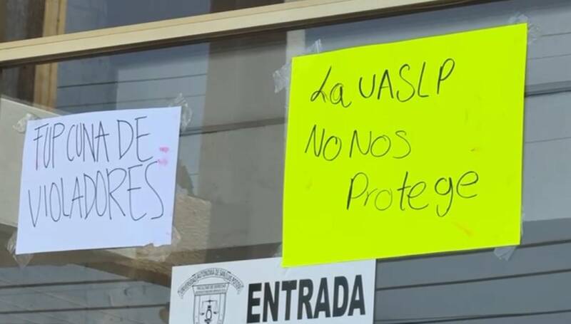 Las estudiantes molestas exigieron al rector Alejandro Zermeño Guerra que, no se proteja a los líderes estudiantiles de la Federación Universitaria Potosina (FUP), a quienes señalan como responsables de la agresión sexual, así como a un hombre externo.