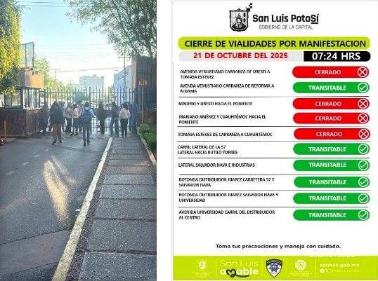 En contraste, permanecen transitables avenidas "Venustiano Carranza", "Salvador Nava", la lateral de la carretera 57 y las rotondas del Distribuidor Juárez, aunque se recomienda a los automovilistas usar rutas alternas y conducir con precaución.