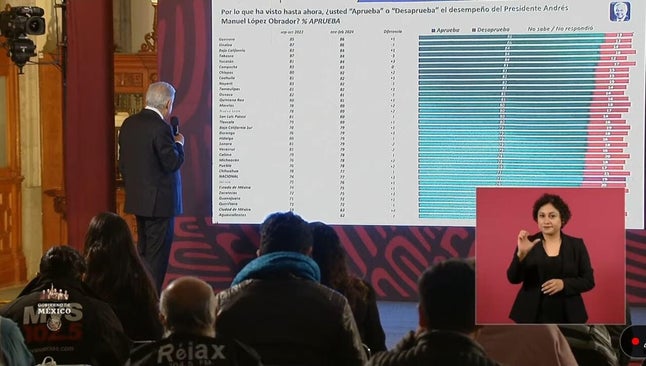 El presidente también informó una encuesta con la aprobación hacia su mandato donde es muy alta en promedio al igual que el caso específico de San Luis Potosí, estado gobernado por su aliado Ricardo Gallardo Cardona, donde es del 80 por ciento.