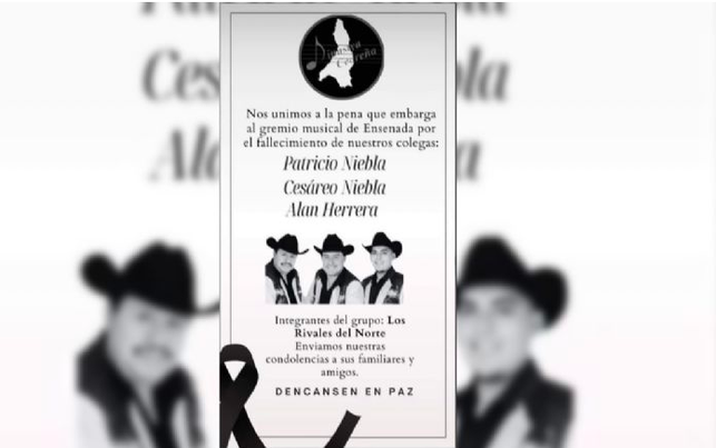 Ayer viernes las autoridades informaron que los cuerpos de tres integrantes fueron localizados en un camino de terracería hacia el rancho San Juan, en la delegación de Real del Castillo. Sus familiares reportaron desde la noche del jueves que fueron secuestrados al salir de una fiesta en la localidad de Ojos Negros en el municipio de Ensenada.