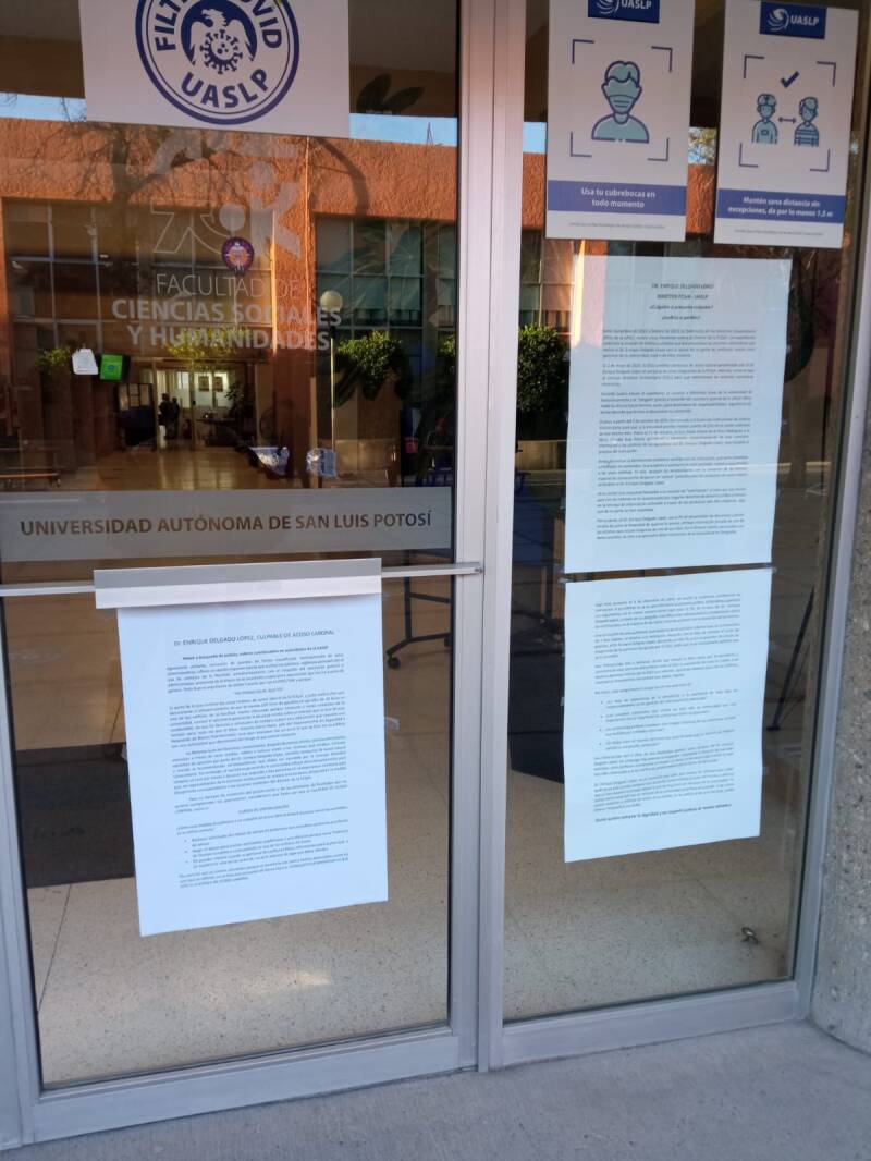 AFECTADAS POR ACOSO LABORAL EN LA FCSyH DE LA UASLP DICEN QUE TODO COMENZÓ DESDE QUE DENUNCIARON QUE SE GUARDABAN GARRAFAS DE COMBUSTIBLE EN UNO DE LOS EDIFICIOS PONIENDO EN PELIGRO DE UNA EXPLOSIÓN A LA POBLACIÓN ESTUDIANTIL