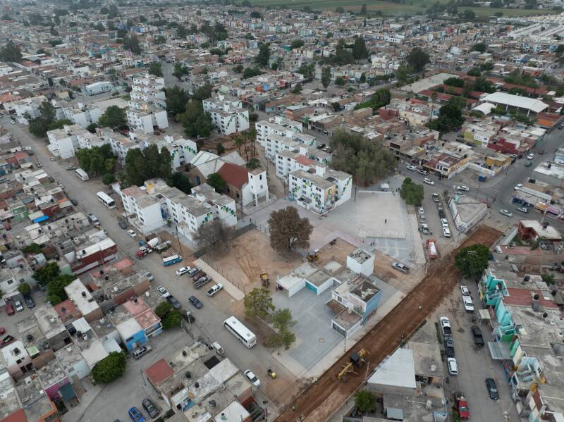 Durante un recorrido de supervisión por la reconstrucción de la Plaza las Águilas, el gobernador Ricardo Gallardo Cardona constató que las obras avanzan en tiempo y forma, por lo que en breve más de 10 mil habitantes de las colonias Prados de San Vicente Segunda Sección y Ciudad 2000, disfrutarán de un espacio seguro para la sana convivencia.