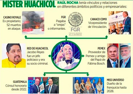 Raúl Rocha Cantú, el dueño del concurso de Miss Universe, acusado por la FGR de narco, tráfico de armas y venta de huachicol, sobornó a una alta funcionaria de esa dependencia para obtener información sobre la indagatoria en su contra. La fiscal que aceptó el soborno y ayudó a Rocha, fue Mari Carmen Ramírez Rodríguez, según la acusación oficial, informa hoy Grupo Reforma.
