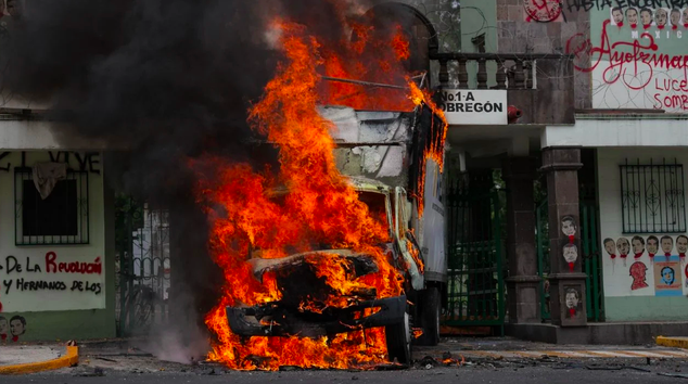 Integrantes de la Federación de Estudiantes Campesinos y Socialistas de México lanzaron petardos e incendiaron tres vehículos frente a la fachada del Palacio de Justicia de Iguala de la Independencia, Guerrero, tras culminar las actividades con madres y padres de los 43 normalistas desaparecidos al cumplirse 11 años de los hechos.