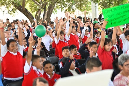 Frente a la entusiasmada comunidad escolar, en la unidad deportiva, el mandatario potosino destacó que en el nuevo ciclo el Gobierno del Estado garantiza el derecho a la educación de la niñez y la juventud, como parte de la estrategia del desarrollo y transformación, para combatir la pobreza y sumar a las y los jóvenes al desarrollo que ha logrado, además de disminuir el gasto familiar en el regreso a clases.