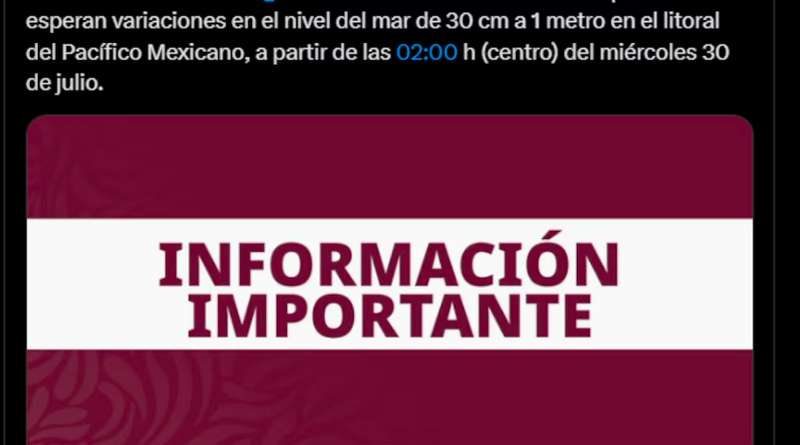 A través de sus redes sociales, la Coordinación Nacional de Protección Civil (CNPC) difundió horarios estimados para el arribo de olas en distintas regiones costeras, con variaciones según la ubicación geográfica.