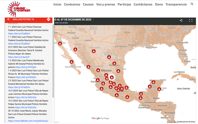 Entre el 1 de enero y el 7 de diciembre del presente año que está por concluir hoy, en México han sido asesinados al menos 403 policías, en promedio uno por día, de acuerdo con datos recopilados por la organización Causa en Común. El mapa del reporte denominado Registro de Policías Asesinados 2023 incluye a San Luis Potosí con 10 uniformados abatidos: