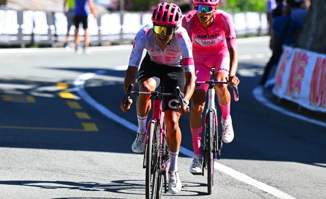 La etapa culminó con un puerto de tercera categoría en descenso aprovechado por los punteros que se dieron a la fuga mientras Del Toro -ahora con la Maglia Blanca que designa al mejor ciclista de menor e 25 años- y Carapaz peleaban un campeonato que ya no tendrán.