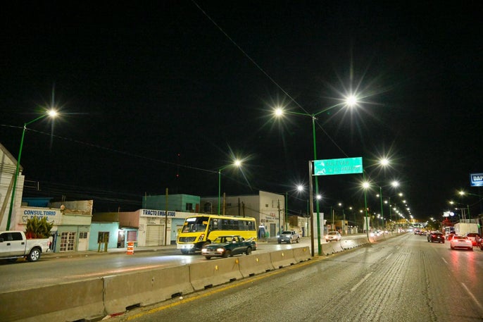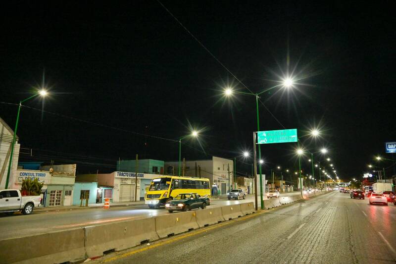 En la transformación de este importante tramo se intervinieron 37 mil 600 metros de cableado, así como mil 326 postes y 2 mil 31 luminarias LED, a lo largo de carretera a Rioverde.