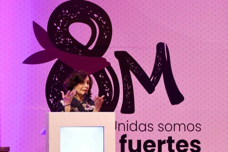 En el marco de la conmemoración del Día Internacional de la Mujer, la reconocida escritora y periodista Ángeles Mastretta inauguró las actividades del 8M organizadas por el Ayuntamiento de San Luis Potosí con la conferencia magistral “Mujeres de ojos grandes”, ante un Palaco Municipal repleto de mujeres potosinas que escucharon su mensaje. Durante su intervención, Mastretta agradeció la oportunidad de abrir esta celebración, pues señaló que no se festeja lo suficiente el avance que ha significado esta fecha en la lucha por la igualdad.