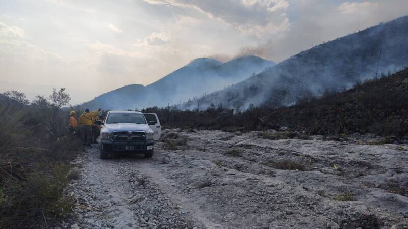 Este incendio continúa con labores por parte de brigadistas, pues no se han logrado controlar las llamas por el lado de Nuevo León; se ha trabajado desde hace 10 días con recursos estatales, federales y municipales para sofocarlo, no obstante las y los brigadistas se encontraron con condiciones geográficas y del clima difíciles que complicaron las labores de liquidación, aunque no representó un riesgo para las y los habitantes de poblaciones de Matehuala.