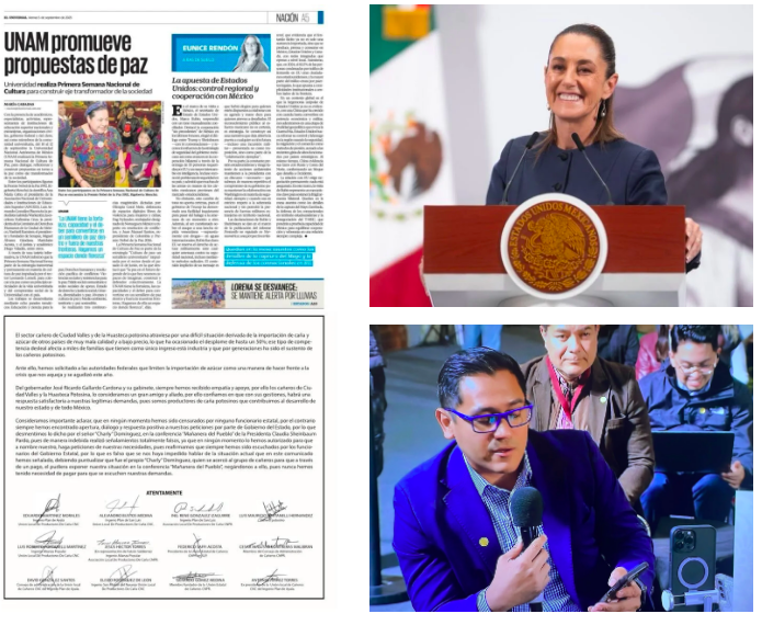 A través de un sendo desplegado en el periódico El Universal, cañeros potosinos publicaron un comunicado en el cual desmienten a un reportero de la conferencia Mañanera de la presidenta Claudia Sheinbaum negando haber sido "censurados" por el Gobierno del Estado para no hablar de la difícil situación que atraviesa el sector y afirmaron que Ricardo Gallardo Cardona y sus funcionarios son sus aliados y siempre los han apoyado.