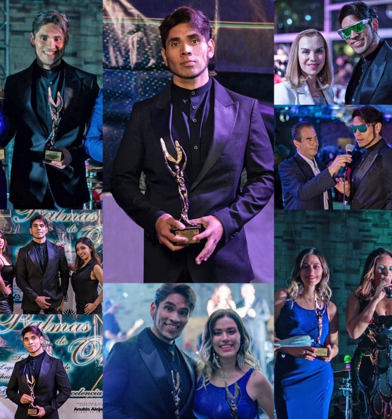 El joven potosino Anubis Alejandro recibió el el pasado jueves 17 de agosto el Galardón "PALMAS DE ORO 2023" por su brillante trabajo como cineasta internacional y artista multidisciplinario, cantautor, escritor, actor, promotor cultural, conferencista y terapeuta en desarrollo humano.