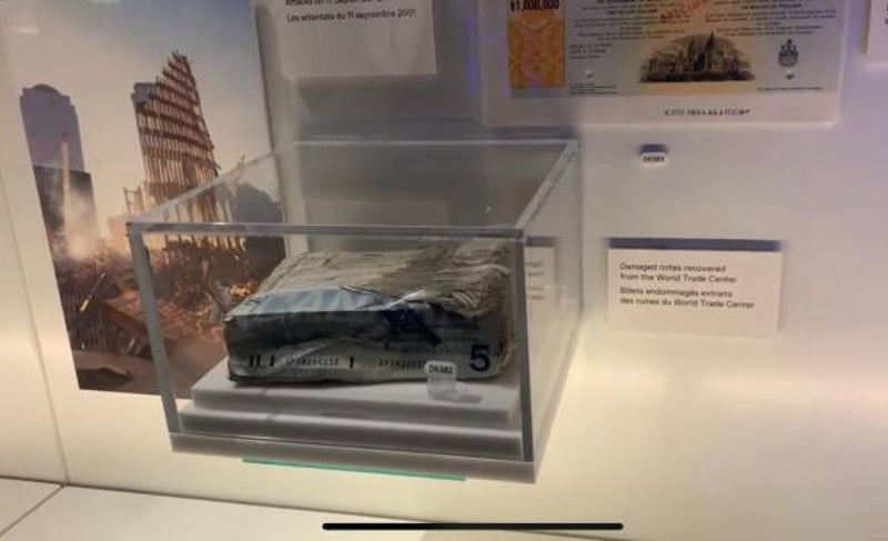 Ahora bien, entre los escombros de las torres gemelas, se encontró un paquete de billetes nuevos de 5 dólares canadienses, que al parecer eran para hacer los cambios de divisas, ya que lucían muy bien acomodados dentro de una bolsa especial. Dicho paquete de billetes fue regresado a Canadá y se expone en la galería del museo del banco de Canadá https:/www.bankofcanadamuseum.ca/ en la capital Ottawa.