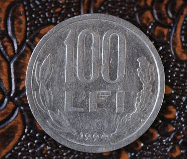 Aquí aparece en el centro la denominación 100 Lei y el año 1994, a la derecha se encuentra una rama de roble y a la izquierda una rama de laurel. El grabador fue Constantin Dumitrescu (C D).