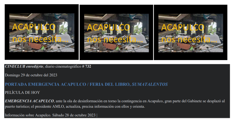 Me referiré de manera particular a las opciones referida en su oferta fílmica “en línea”; en particular al sitio CINECLUB enred@rte con sugerencias selectivas.